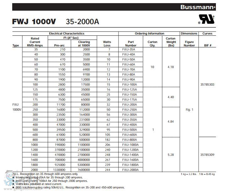 FWJ-40A 40A 1000Vac/dcBSM 巴斯曼快熔 |