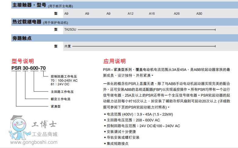 一體化的概念在PSR上顯露無遺,除了與ABB手動電動機起動器實現**的配合