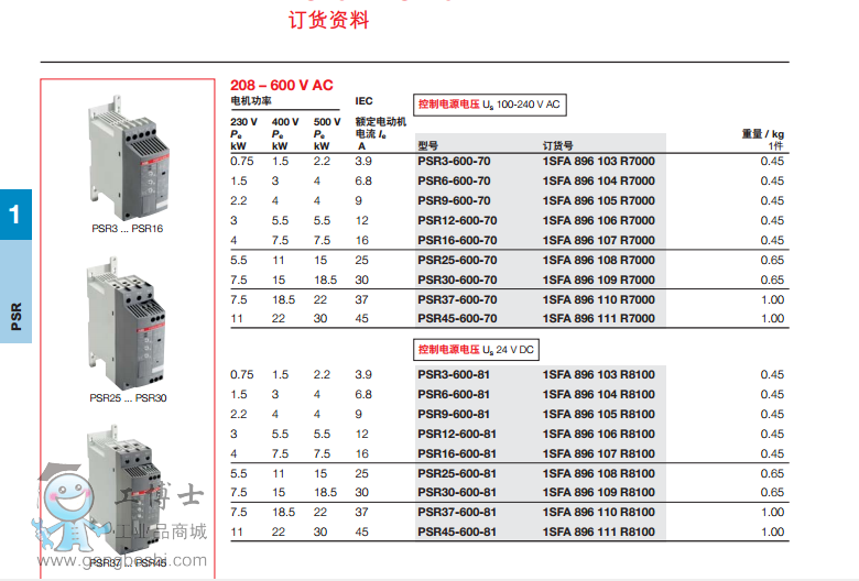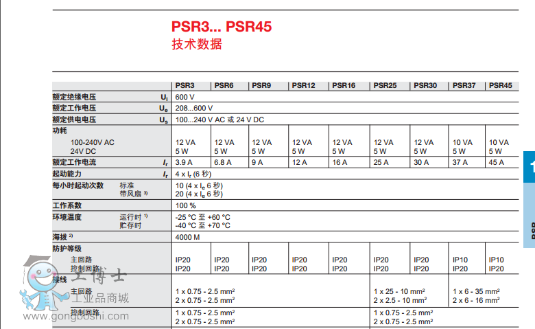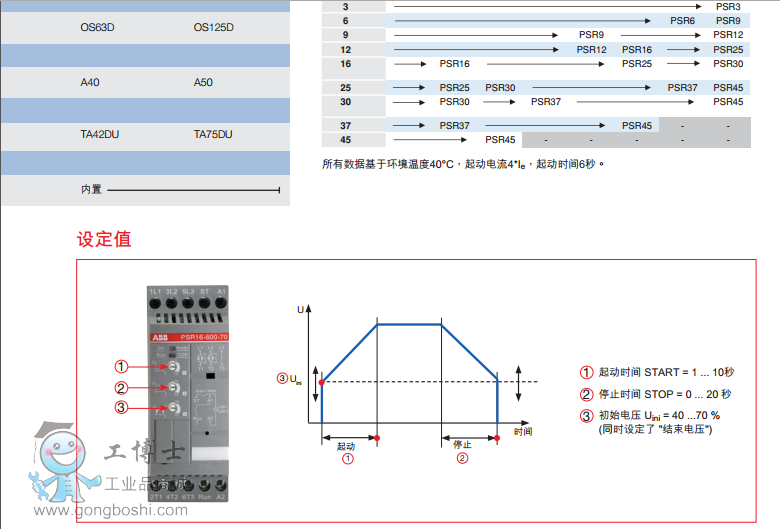 PSR - 緊湊型系列,覆蓋電動機電流范圍從3A至45A,是ABB軟起動器家族的*