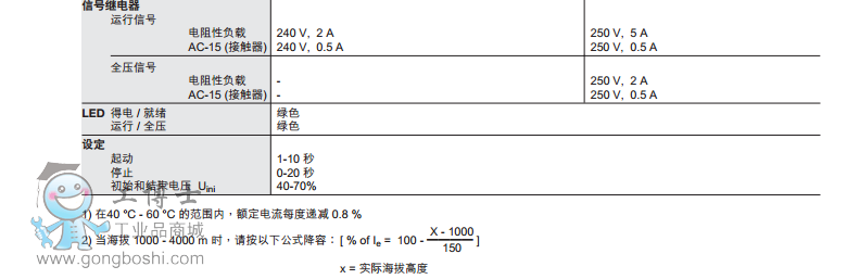 信號繼電器,25A及以上的PSR還帶有一個全壓信號繼電器。PSR軟起動器的起