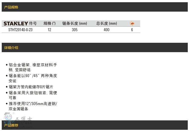 史丹利STANLEY手工具 金屬方管鋼鋸架 STHT20140-8-23