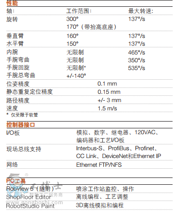 IRB 5400系列省時、省料的優(yōu)勢定能獲得您的青睞。IRB 5400將換色閥、漆料泵和流量傳感器和空氣/漆料調(diào)節(jié)器,集成到手臂上在同類噴涂機(jī)器人中是可靠性*強(qiáng)、經(jīng)濟(jì)效益*高的產(chǎn)品之一。