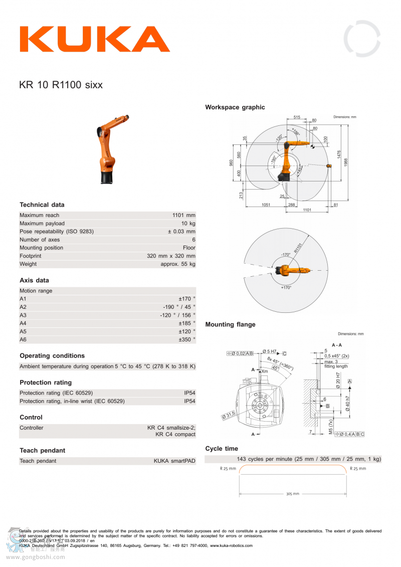 KR10 R1100 sixx代理KUKA庫卡機器人弧焊裝配點焊