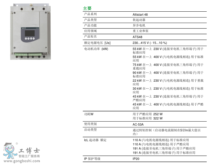 ATS48 高性能的算法對提高設備的可用性、安全性和設置易用性起了顯著作用。ATS48 軟起動- 軟停止單元是成本效果的*佳解決方案,