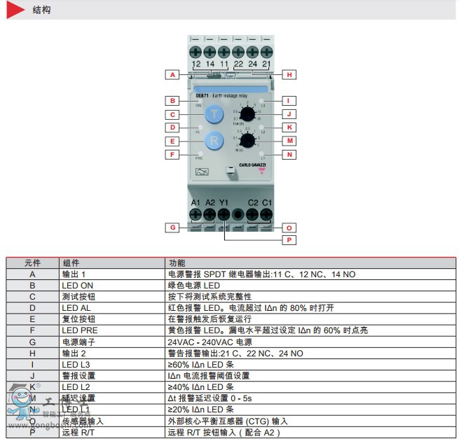 • 電位指示。LED 條顯示實時漏電電流概覽。