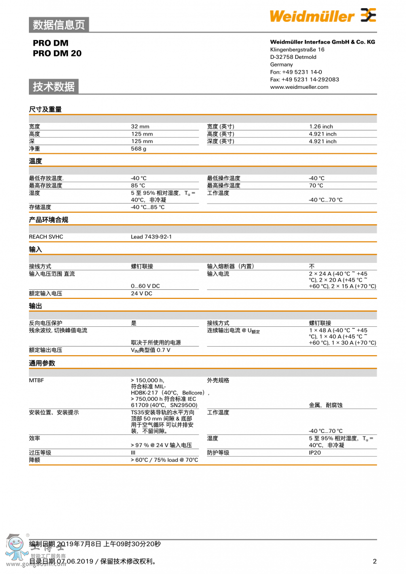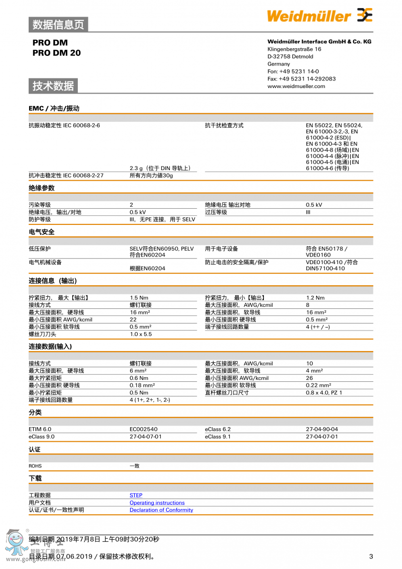 PRO DM 20魏德米勒weidmulle 二極管模塊 訂貨號2486080000