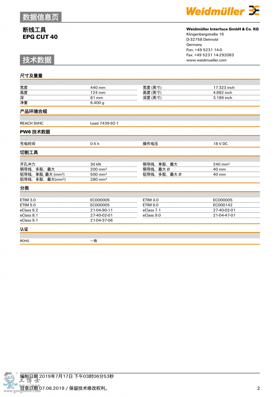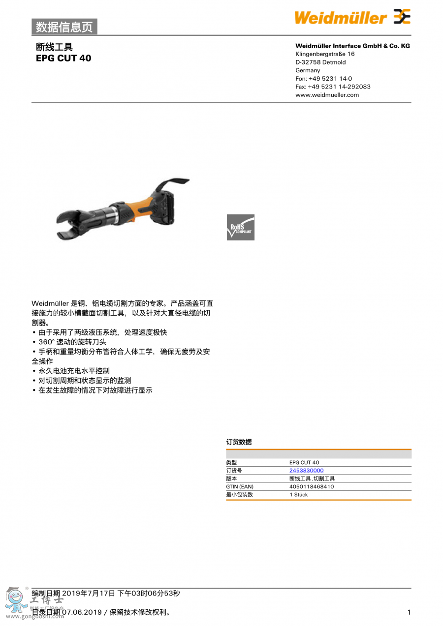 EPG CUT 40 魏德米勒weidmulle 切割工具 訂貨號(hào)2453830000