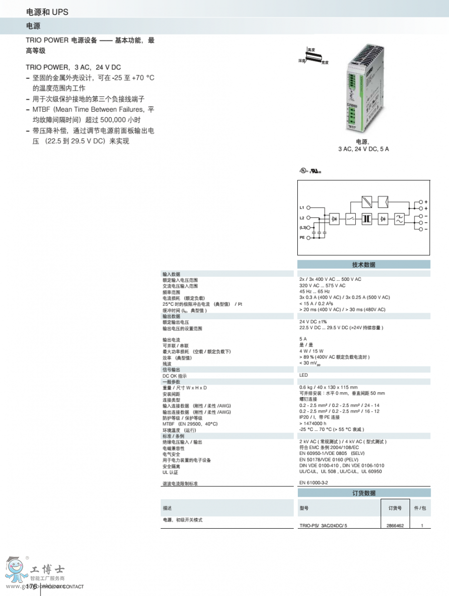 菲尼克斯電源QUIO-PS/3AC/24DC/5訂貨號2866462原裝現貨 可開增票