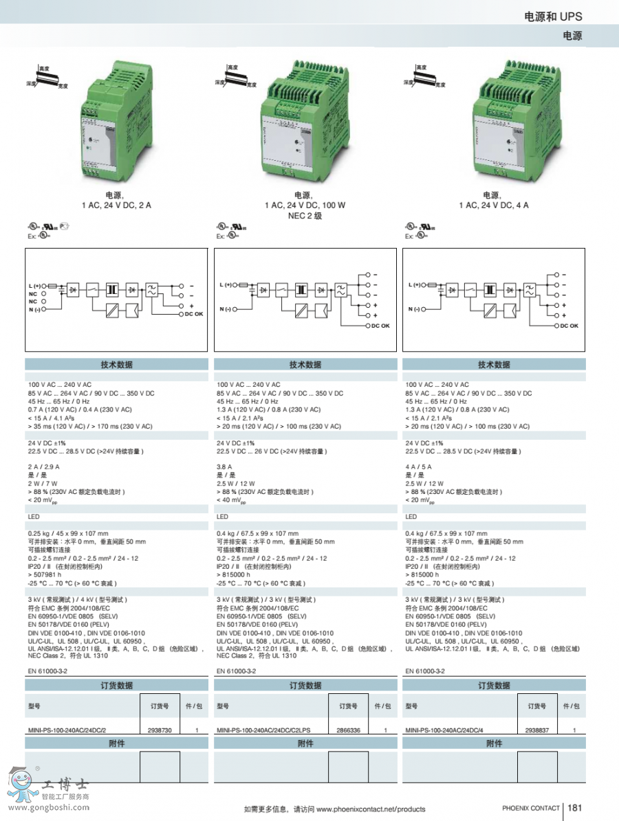 菲尼克斯電源MINI-PS-100-240AC/24DC/C2LPS訂貨號2866336原裝現貨