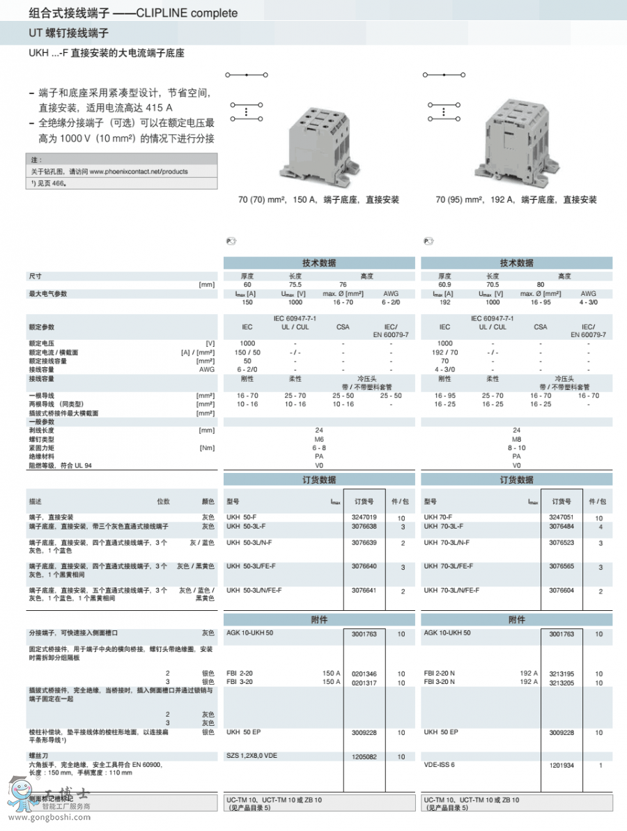 菲尼克斯phoenix螺釘接線UKH 50-F訂貨號3247019原裝現貨 可開增票