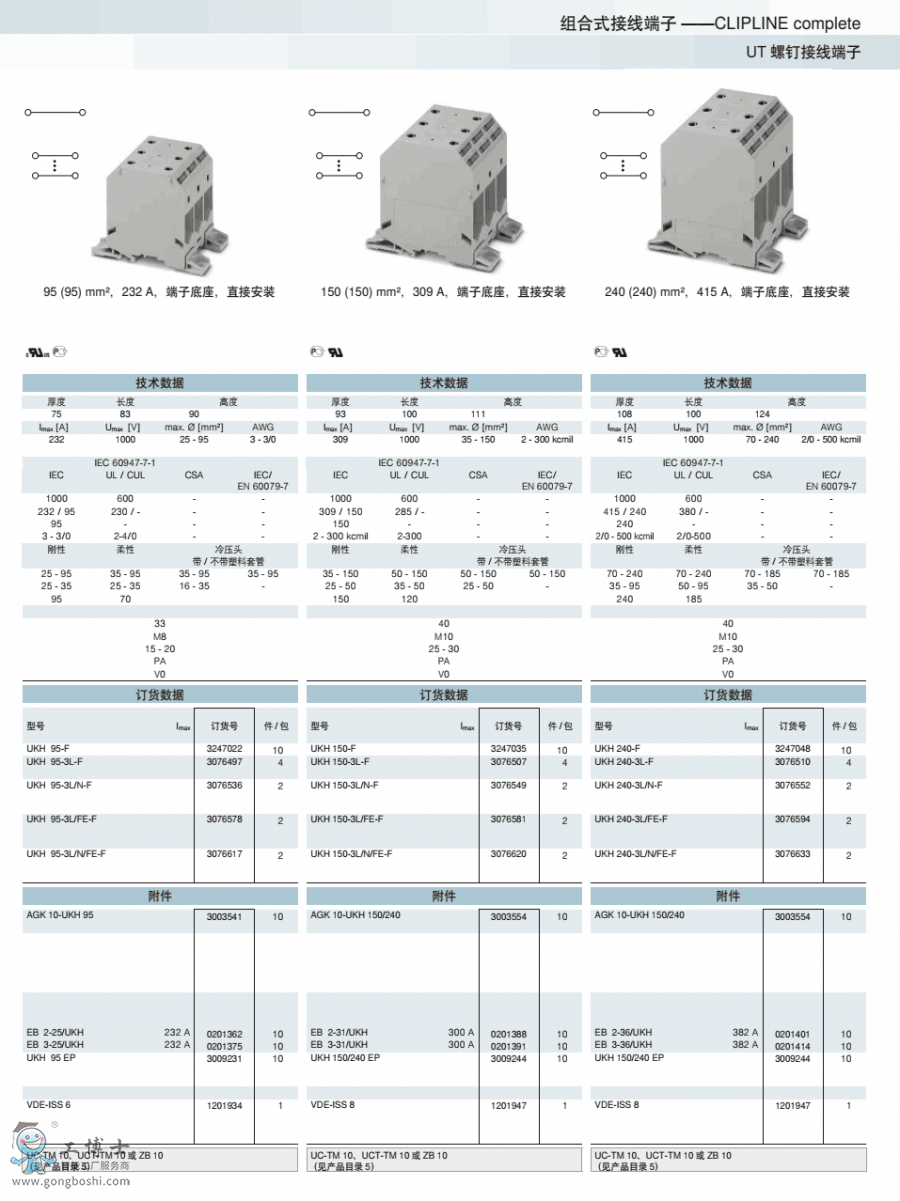 菲尼克斯phoenix螺釘接線UKH 95-3L/FE-F訂貨號3076578原裝現貨 可開增票