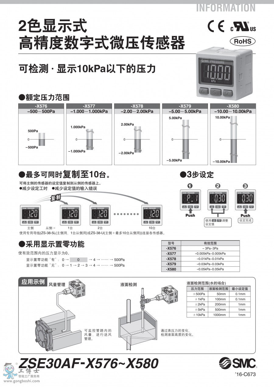 ZSE30AF-X576~X580 2色顯示式高精度數(shù)字式微壓開關(guān)