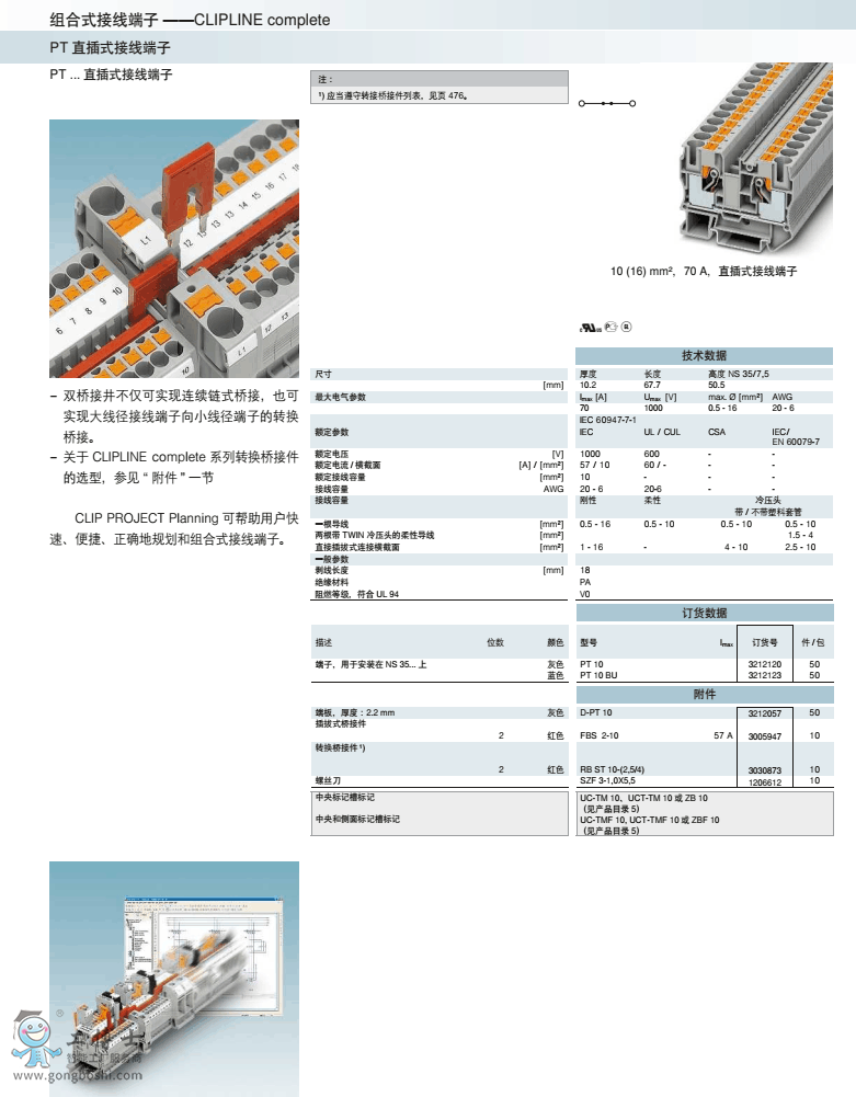 菲尼克斯phoenix直插式接線PT 10訂貨號3212120原裝現貨 可開增票
