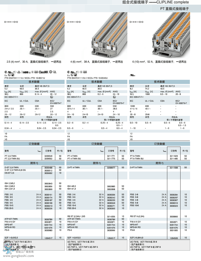 菲尼克斯phoenix直插式接線PT 6-TWIN訂貨號3211929原裝現貨 可開增票