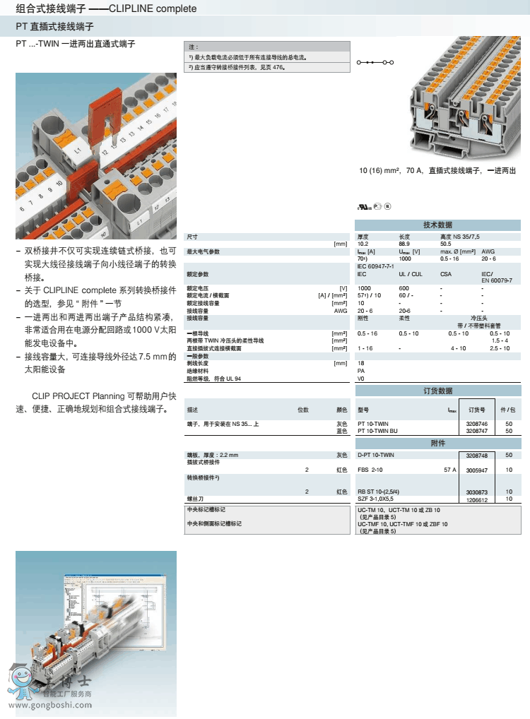 菲尼克斯phoenix直插式接線PT 10-TWIN BU訂貨號(hào)3208747原裝現(xiàn)貨 可開(kāi)增票