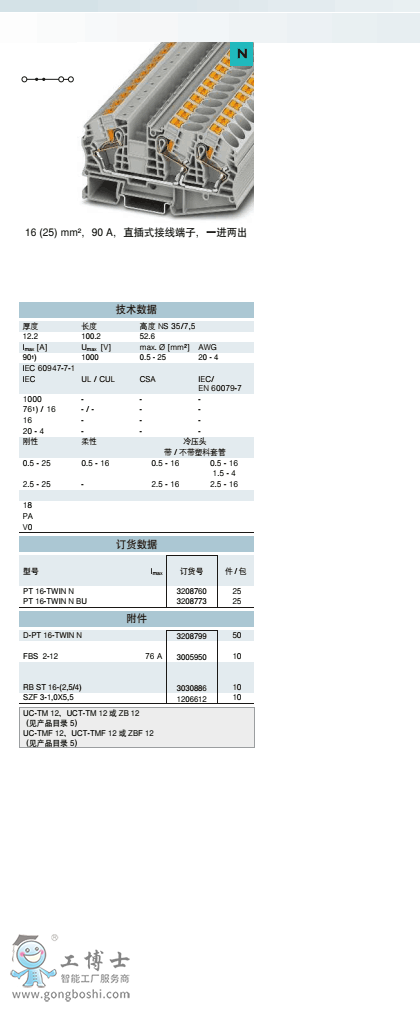 菲尼克斯phoenix直插式接線PT 16-TWIN N訂貨號3208760原裝現貨 可開增票