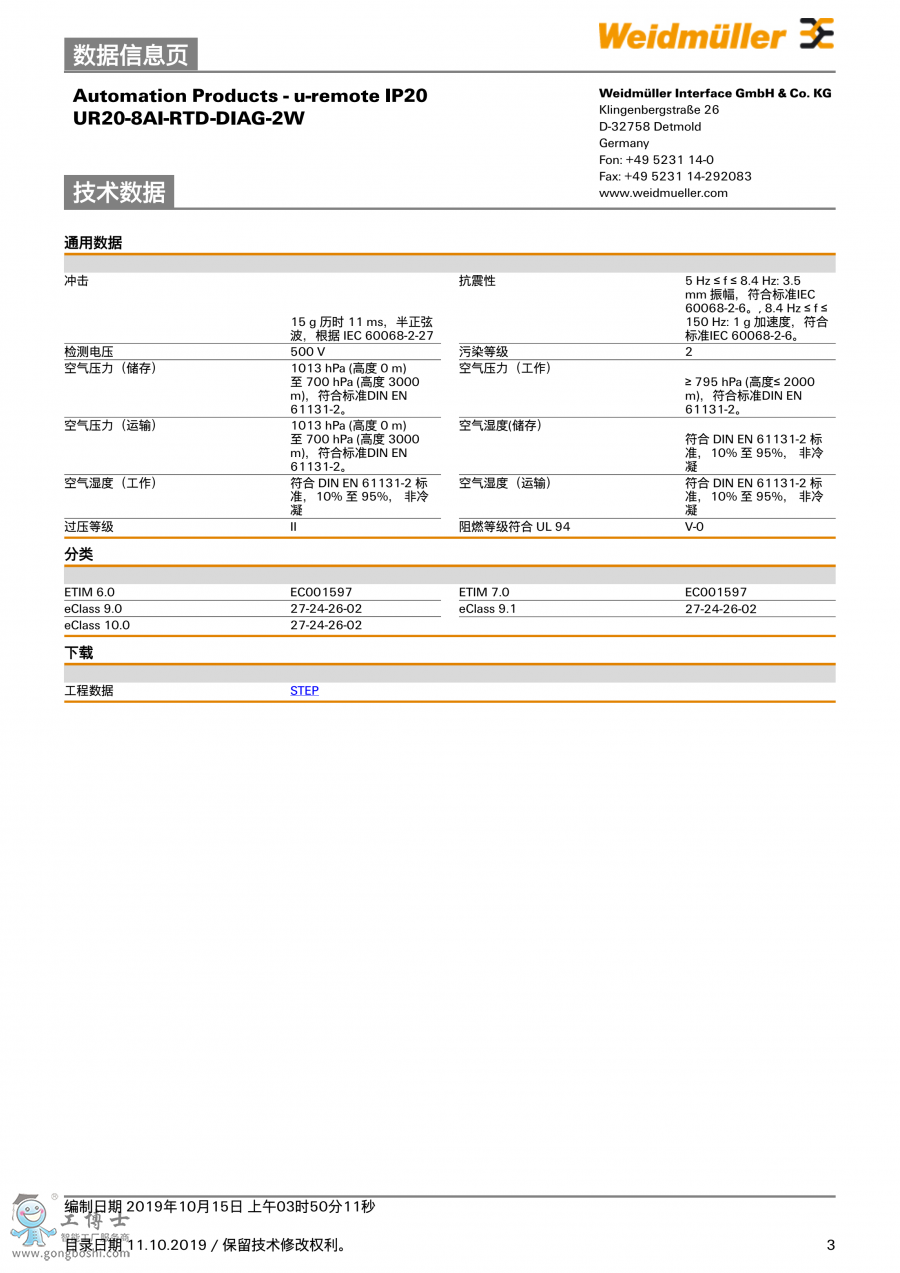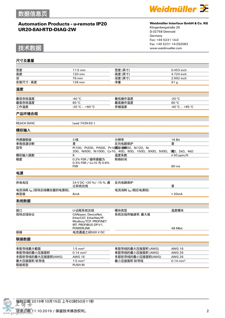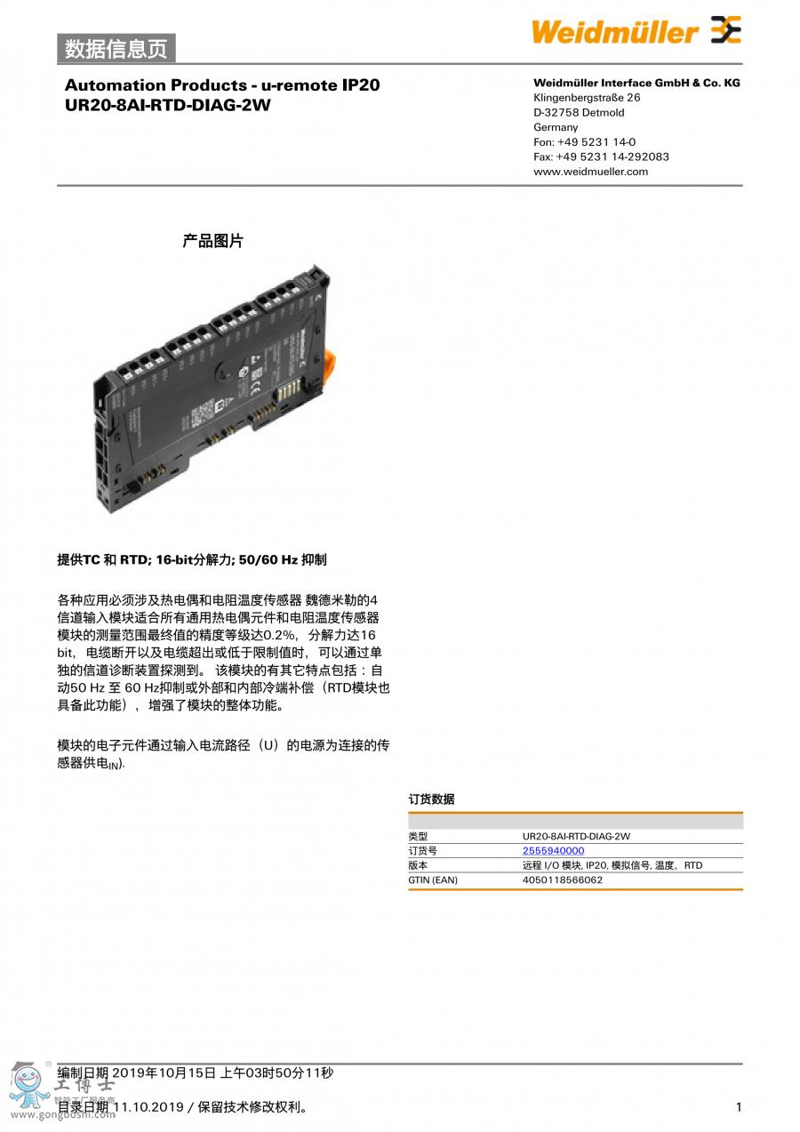UR20-8AI-RTD-DIAG魏德米勒weidmuller遠程I/O訂貨號2555940000