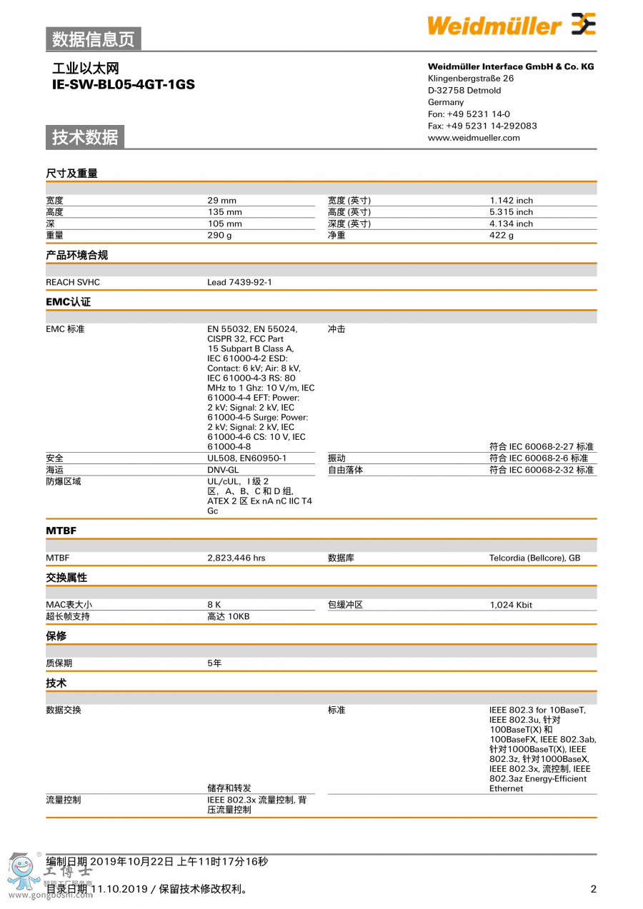 IE-SW-BL05-4GT-1GS 魏德米勒 網絡交換機 訂貨號2435400000