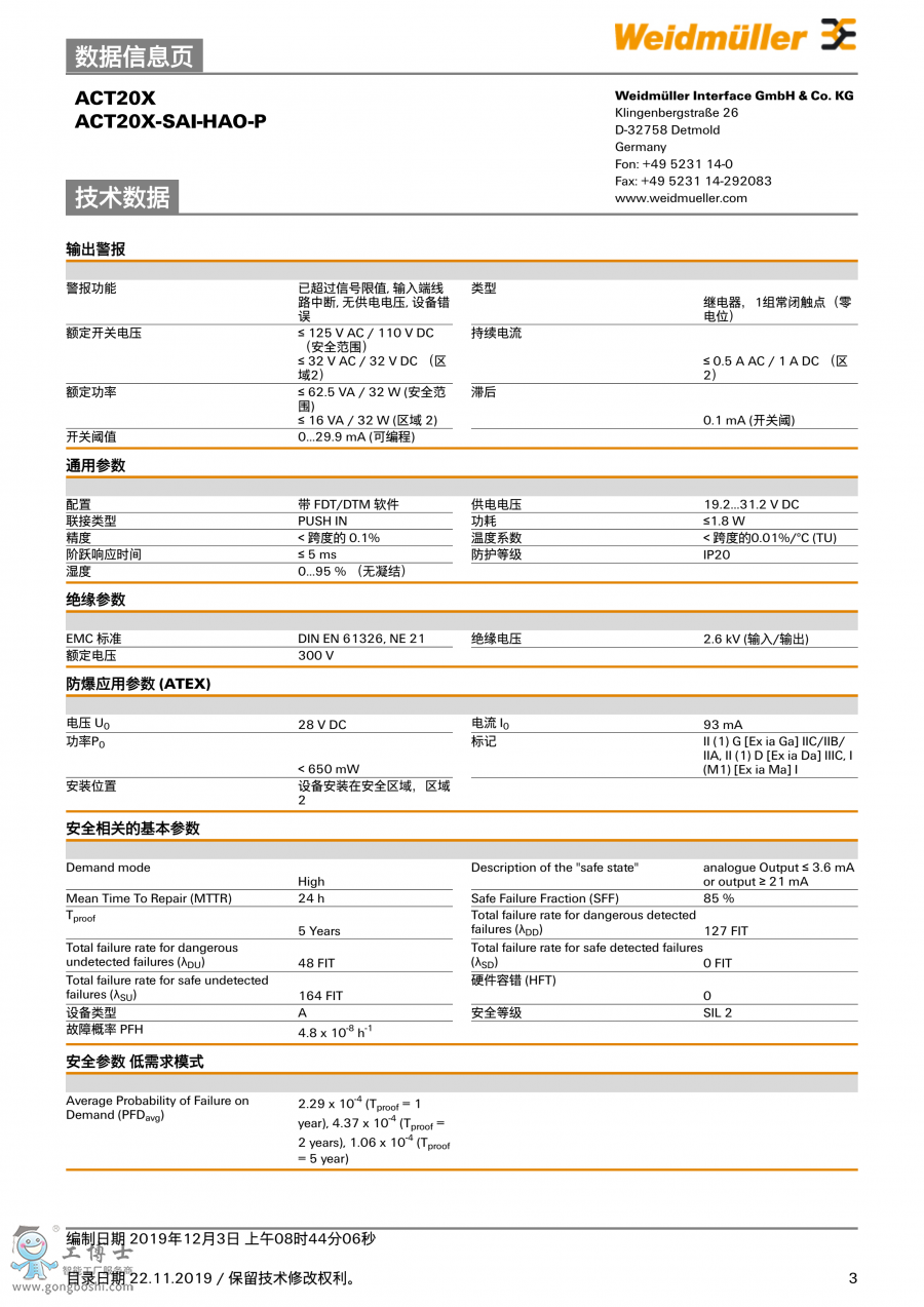 ACT20X-SAI-HAO-P 魏德米勒 防爆信號隔離轉換器 訂貨號2456160000