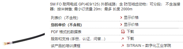 6XV1843-2R產品說明SM FO 耐用電纜 GP(4E9/125) 外部線路;含 防范嚙齒動物;可分段; 不含連接器;按米銷售; *小訂貨量 20m;*多 長度 2000m產品家族