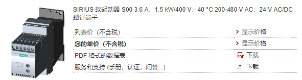 產品說明 SIRIUS 軟起動器 S00 3.6 A,1.5 kW/400 V,40 °C 200-480 V AC,24 V AC/DC 螺釘端子