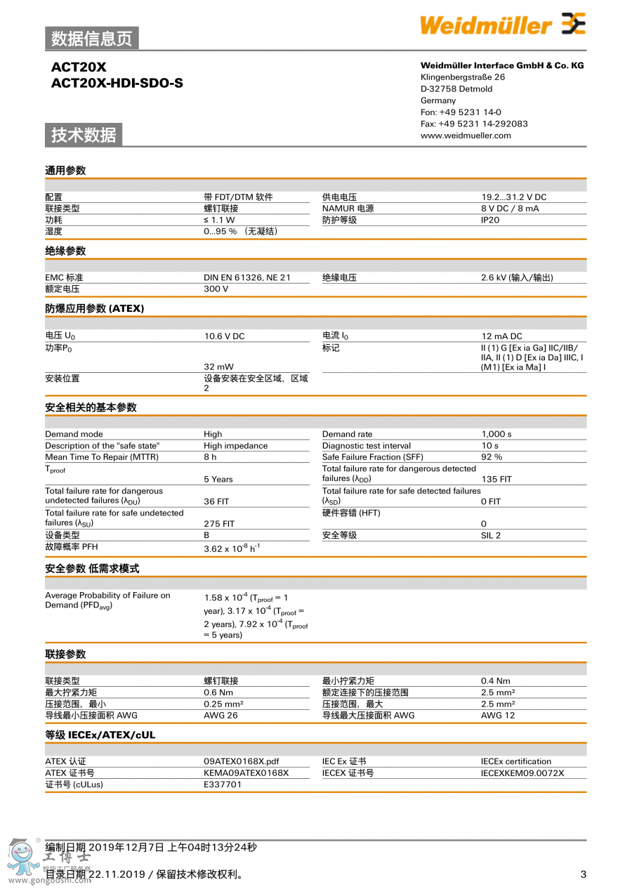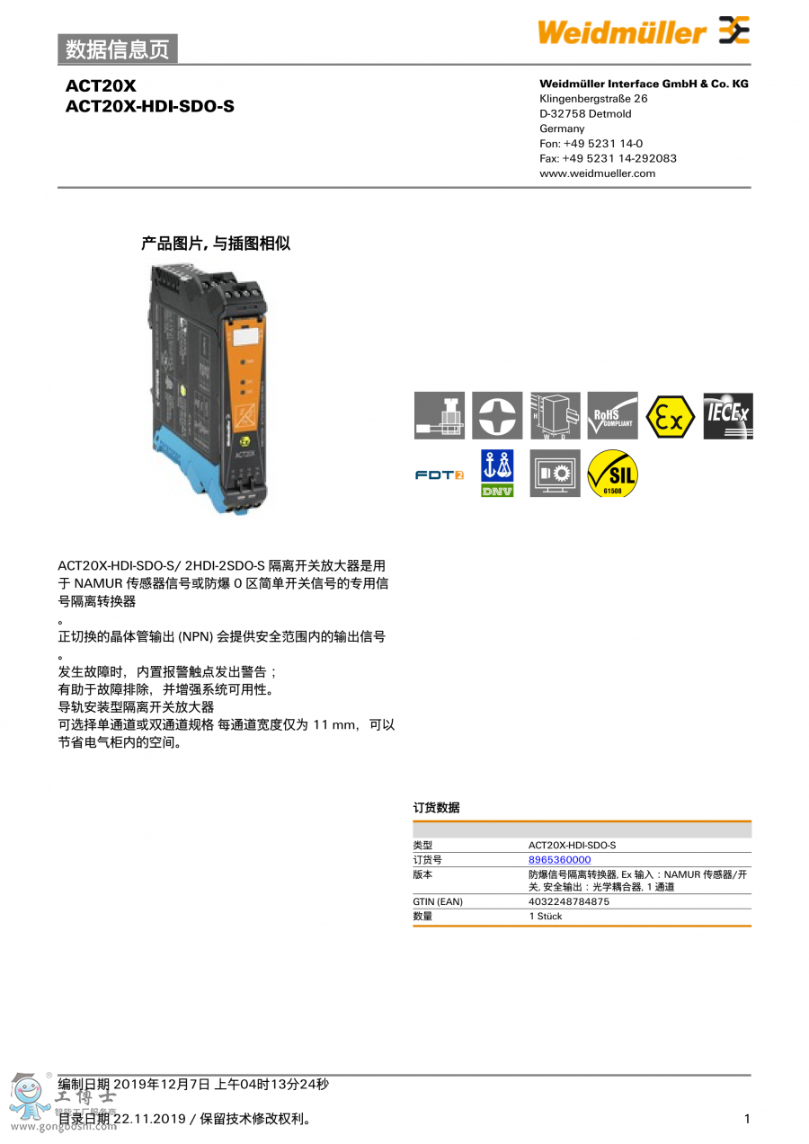 ACT20X-HDI-SDO-S 魏德米勒 防爆信號(hào)隔離轉(zhuǎn)換器 訂貨號(hào)8965360000