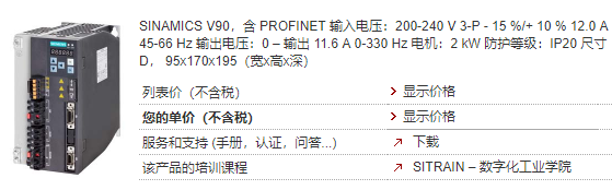 SINAMICS V90,含 PROFINET 輸入電壓:200-240 V 3-P - 15 %/+ 10 % 12.0 A 45-66 Hz 輸出電壓:0 – 輸出 11.6 A 0-330 Hz 電機:2 kW 防護等級:IP20 尺寸 D, 95x170x195(寬x高x深) |