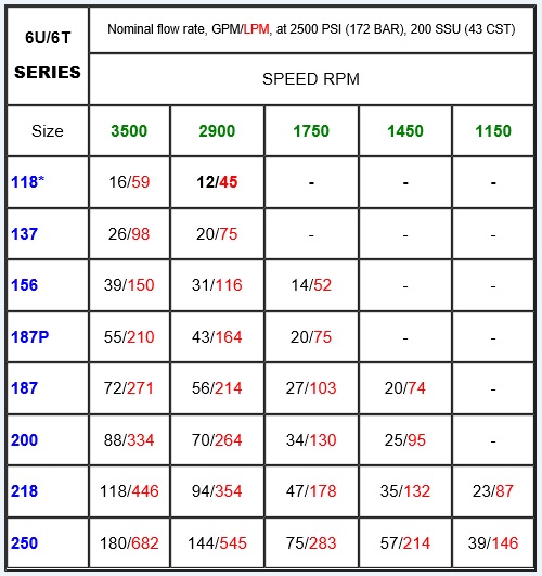 進口壓力---6T: *大進口壓力75 PSIG (5.2 BAR)   6U:*大進口壓力 50 PSIG (3.4 BAR) 。