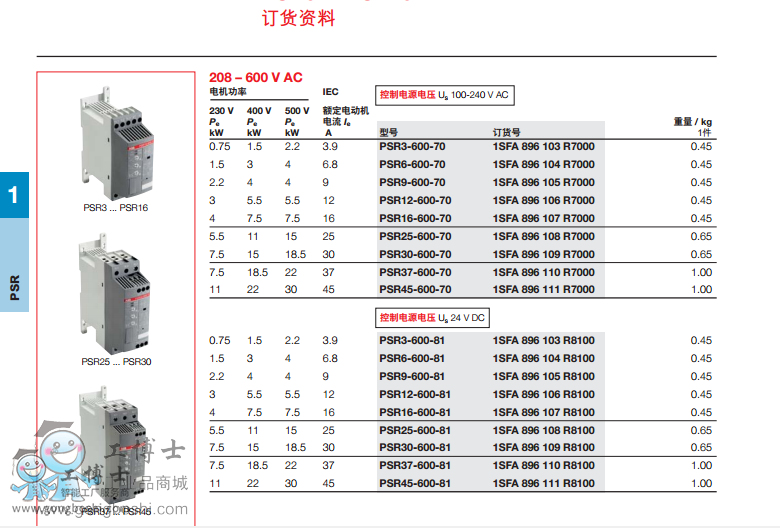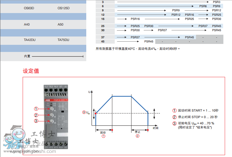 PSR - 緊湊型系列,覆蓋電動機電流范圍從3A至45A,是ABB軟起動器家族的*