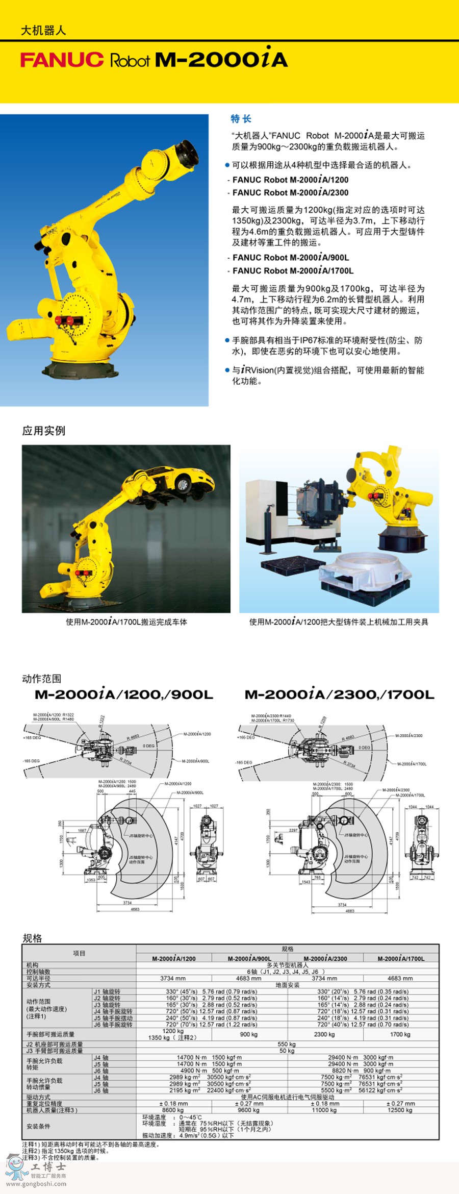 發(fā)那科/FANUC M-2000iA/900L 負(fù)載 900kg 工作區(qū)域 4683mm