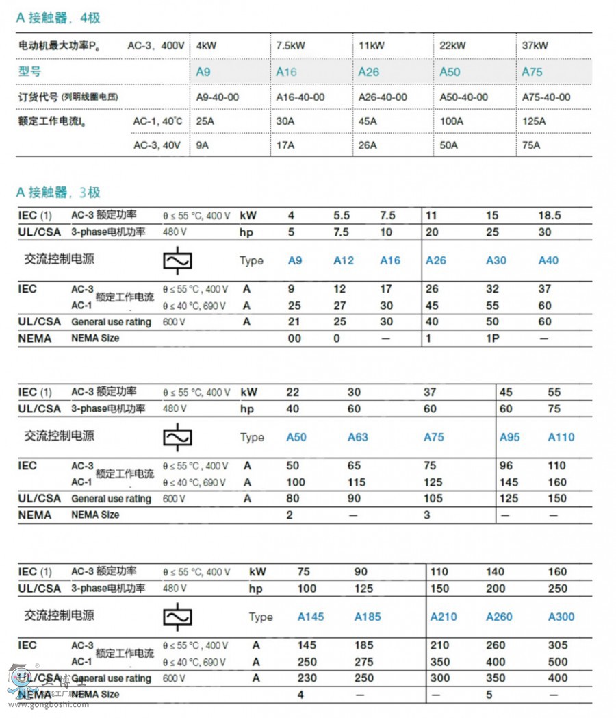 A16-30-10*220-230V 50Hz/230-240V 60HZ A系列交流線圈接觸器