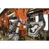 產品拾放過程中,在空間狹小的圓盤工作站上吊裝UR機器人,由左右工人隨機上料。螺絲擰緊后,UR機器人取下完成產品,再根據皮帶線狀況完成分揀投放。靈活的UR機器人使得生產線的改造和調整更加容易。
