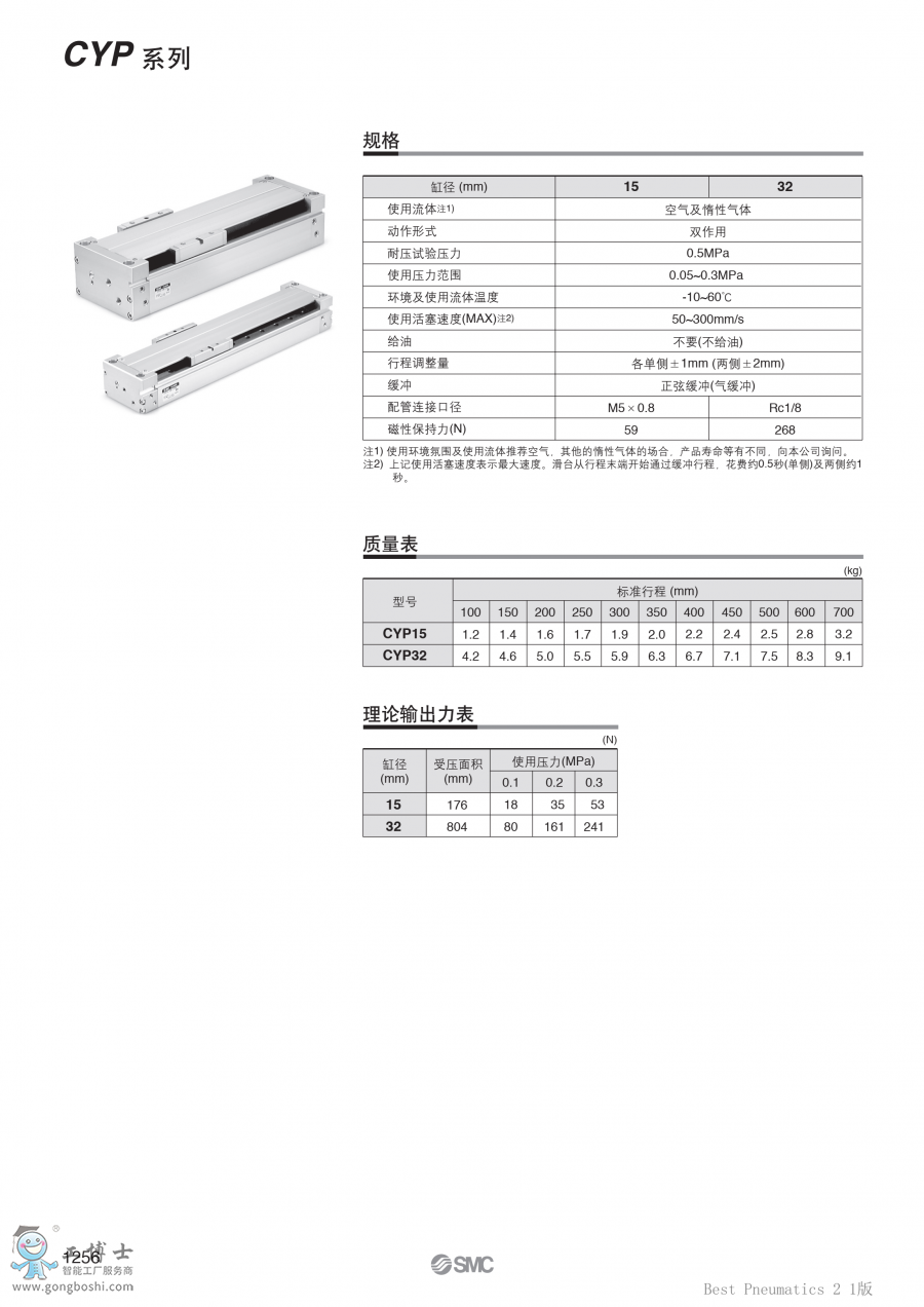 CY1F SMC 磁耦合式無桿缸/低重心導軌型