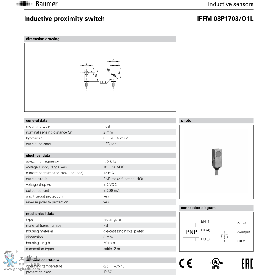 Baumer 堡盟 IFFM 08P1703/O1L-電感式接近開關傳感器現貨可開增票