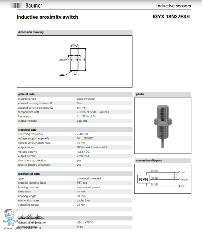 Baumer 堡盟 IGYX 18N37B3/L-電感式接近開關 可開增票