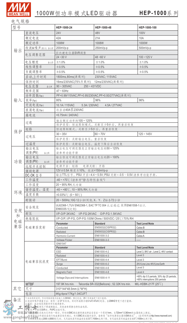 MEAN WELL/明緯HEP-1000-48單組輸出開關(guān)電源