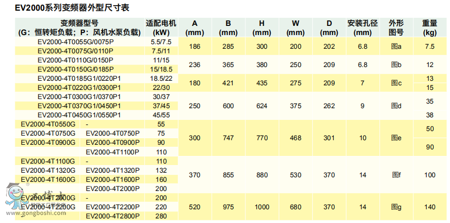 ● EV1000 全系列標配制動單元,EV2000 7.5kW 以下