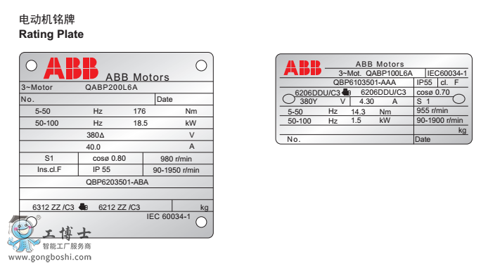 QABP 80M6A 0.37KW 6極 ABB變頻電機