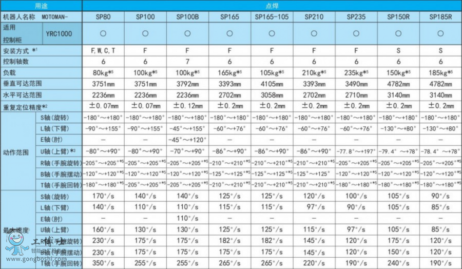 SP系列所有型號(hào)參數(shù)說明(用途:點(diǎn)焊、搬運(yùn))