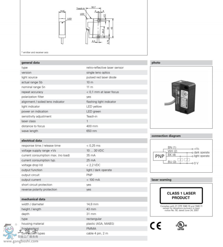 Baumer堡盟OPDK 14P5901鏡反射式光電開關傳感器增票