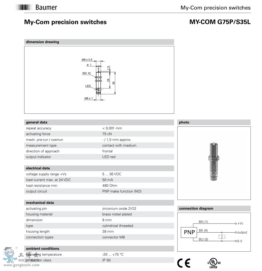 Baumer 堡盟MY-COM G75N/S35L開關(guān)傳感器可開增票