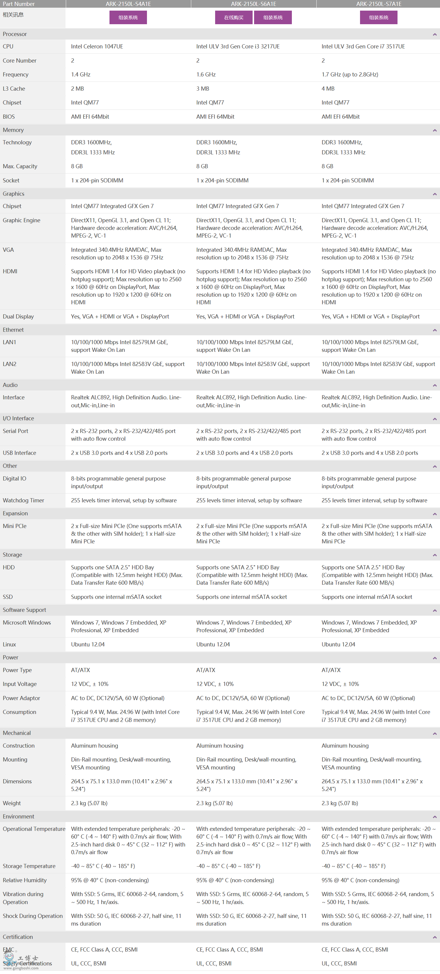 研華工控機 嵌入式工控機 ARK-1000系列 ARK-2150LIntel第三代酷睿i3/i7