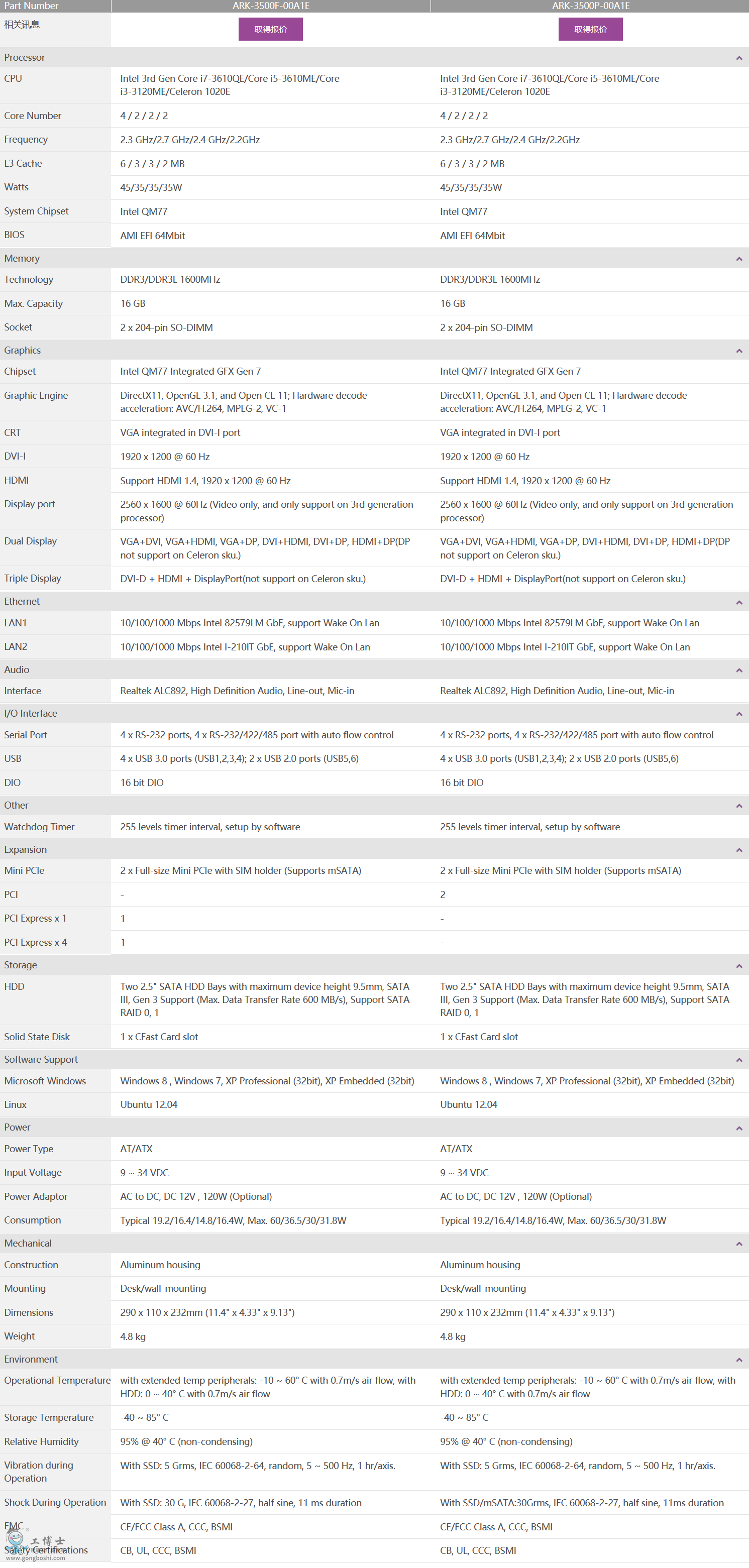 研華工控機 嵌入式工控機 ARK-1000系列 ARK-3500 第三代Intel® Core™