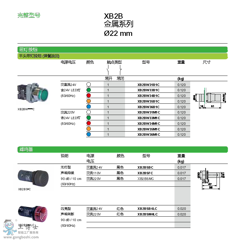 XB2BA11C 白色 施耐德 XB2B平頭按鈕(ZB2BZ101C+ZB2BA1C)