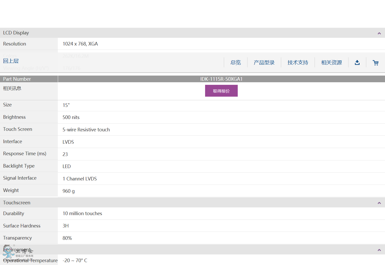 產(chǎn)品特點: 15" XGA 工業(yè)顯示套件,帶電阻式觸摸屏解決方案,寬工作溫度 (-20 ~ 70°C)