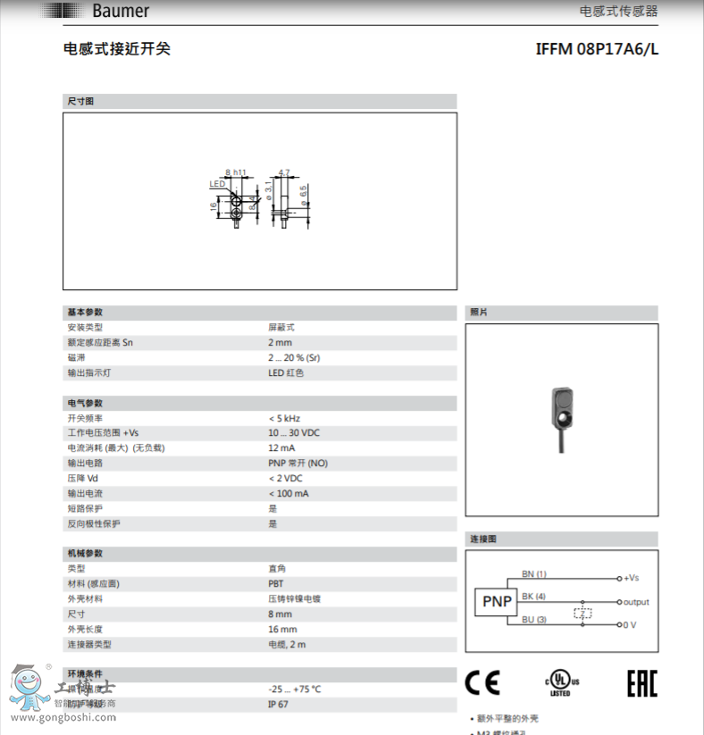 Baumer 堡盟電感式接近開關(guān)IFFM 08P37A6/L開關(guān)傳感器可開增票