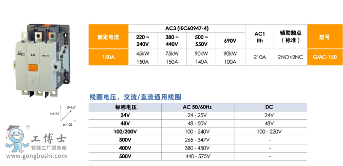 LS電氣(LS產(chǎn)電)GMC-150 AC/DC 2a2b三極交直流通用接觸器現(xiàn)貨