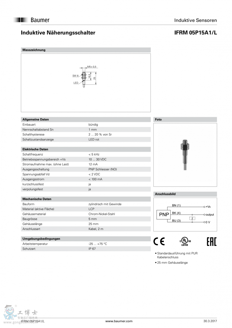 Baumer堡盟電感式接近開關IFRM 05P15A5/Q開增值票