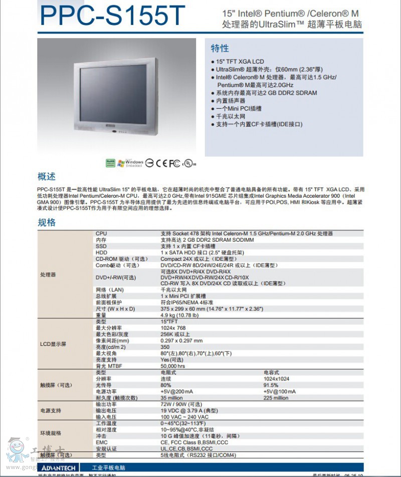 品牌:研華                                            型號:PPC-S157T                                                  類型:工業級一體式電腦