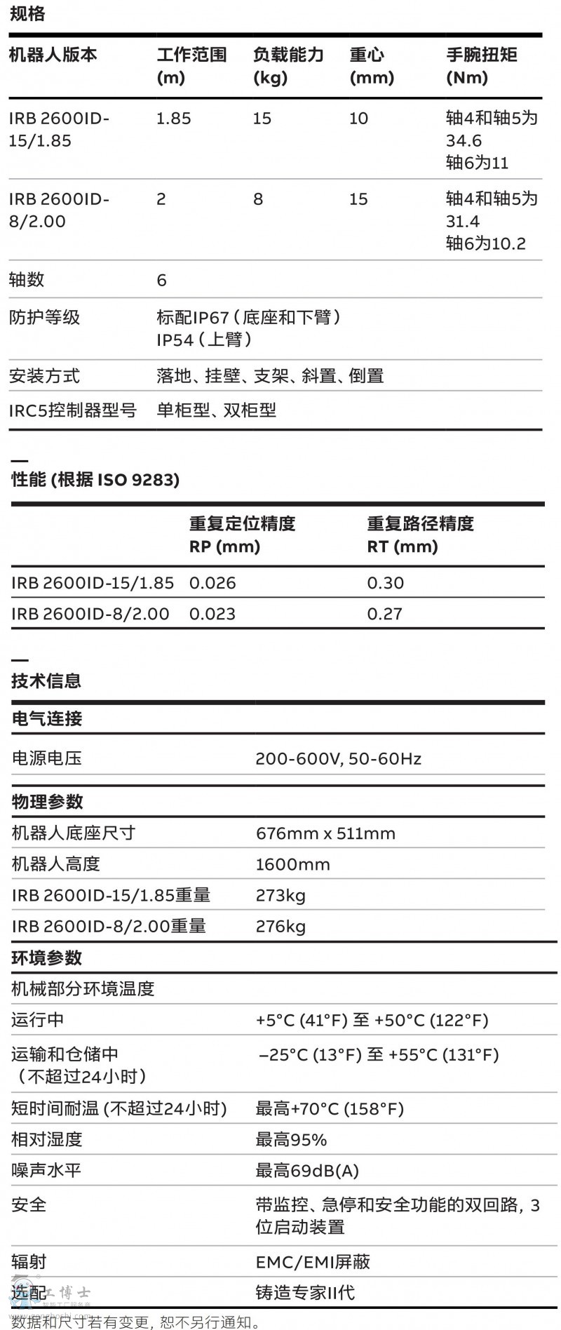 IRB2600ID-8/2.00 負載8KG,臂展2000mm,ABB焊接專用機器人
